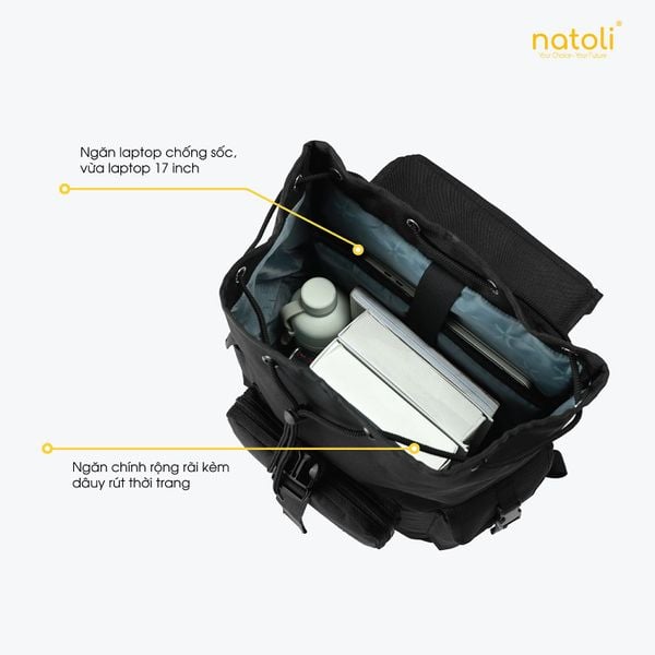 Một trong những điểm khác biệt của NATOLI B31 chính là thiết kế có dây rút ở ngăn chính. Tính năng này không chỉ tạo điểm nhấn thẩm mỹ mà còn mang lại nhiều tiện ích thực tế.