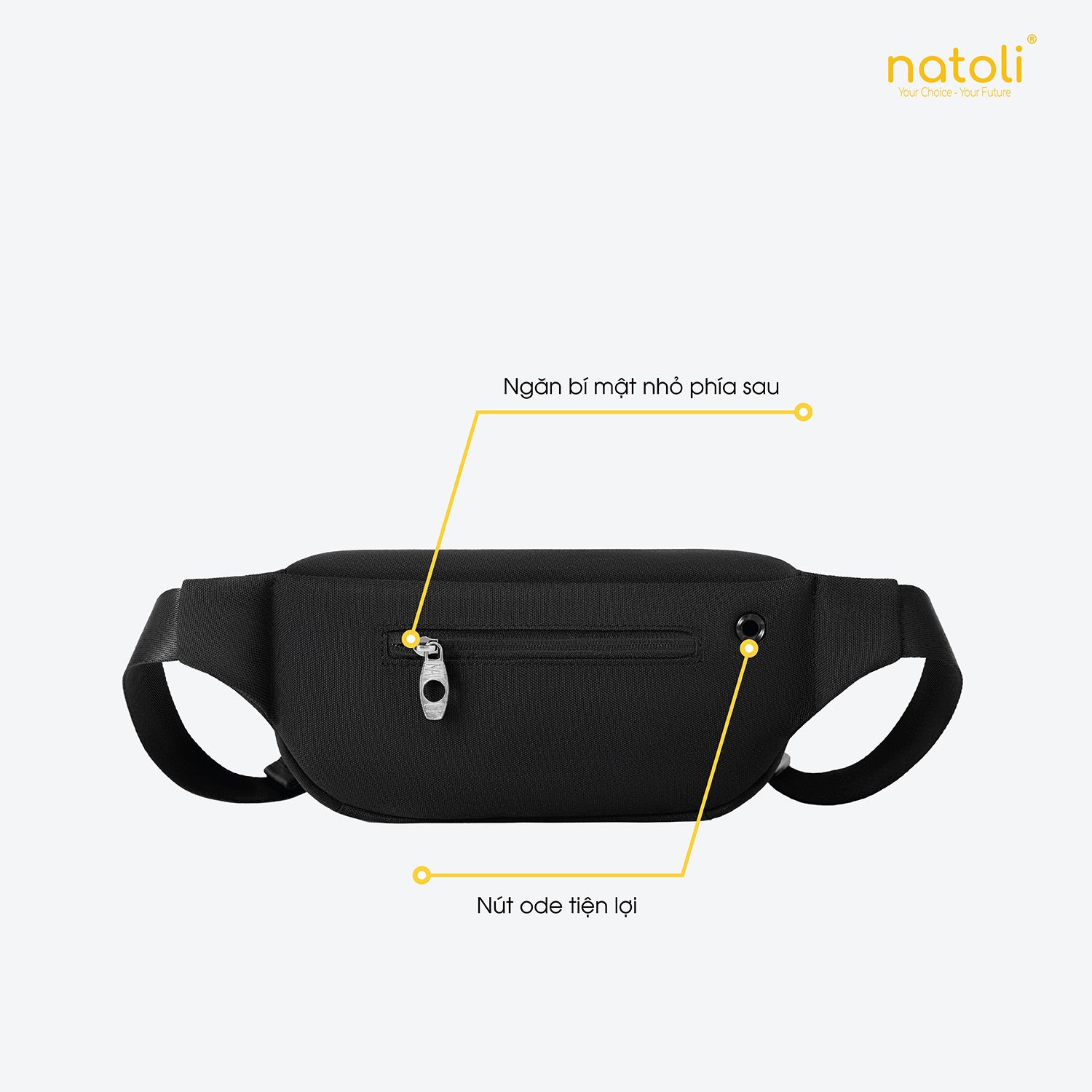 - Nút Ode túi đeo chéo: thoáng khí chống ẩm cho túi, kết nối dây sạc hoặc tai nghe từ bên trong túi tiện lợi.