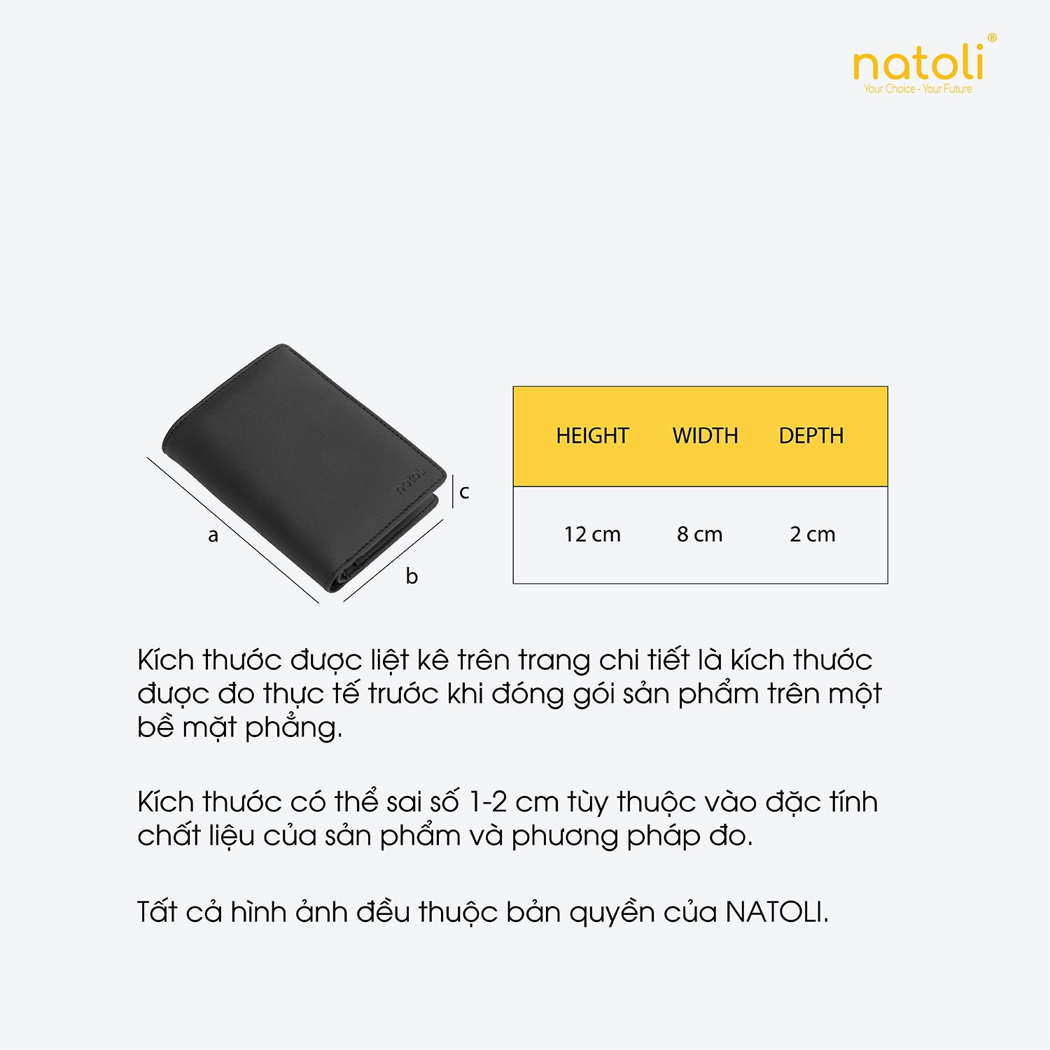 NATOLI đã xử lý kỹ lớp vải phủ trên sản phẩm, giúp màu sắc ví luôn được ổn định không phai màu theo thời gian và tăng khả năng trượt nước. Bên cạnh đó, bề mặt vải cao cấp còn hạn chế việc thấm nước từ bên ngoài.